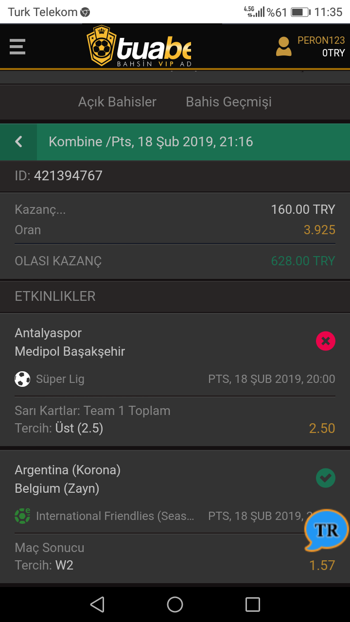 Tuabet sitesi bahisimi kaybetti olarak gosterdi antalyaspor başakşehir maçında ev sahibi team 1  2 buçuk üstü sarı kart görür dedim toplam 3 tane sarı kart gördü ama bahisimi kaybetti olarak sisteme işlediler sorunumu çözemediler bu sorunun çözülmesini istiyorum artik