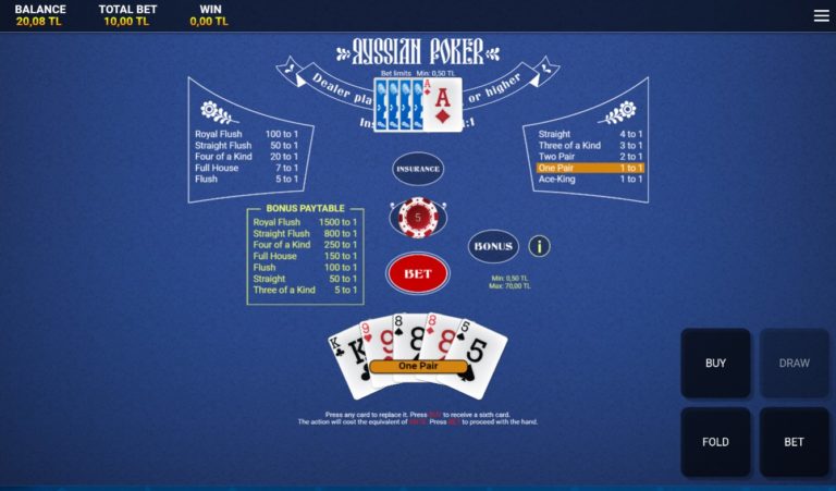 Kart değiştirmekart satın alma ve bonus bahisi gibi oldukça avantajlı ve kazanç dolu özelliklere sahip olan Tümbet Rus Pokeri heyecanını istediğiniz yerde yaşamak için hemen şimdi Tümbet hesabınıza giriş yapın ve hem düşük limitlerle hem de Türk Lirası ile Rus Pokeri oynamanın keyfini çıkarın.