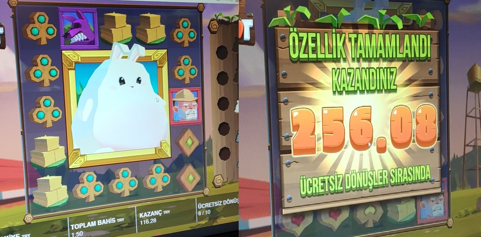 Tavşan havuçları yedikçe büyüyor ve wild sembol oluyor ve free spin turu uzuyor. Son 3 tur şişko tavşan bu boyutta tam ortada kalınca bahise göre büyük kazanç verdi. Daha güzel sembollere denk gelseydi çok daha iyi kazanılabilirdi. Yine de oynarken hem eğlendim hem de kazanç sağladım.